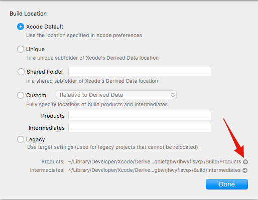 - Clicking on that small arrow will reveal the product folder in Finder