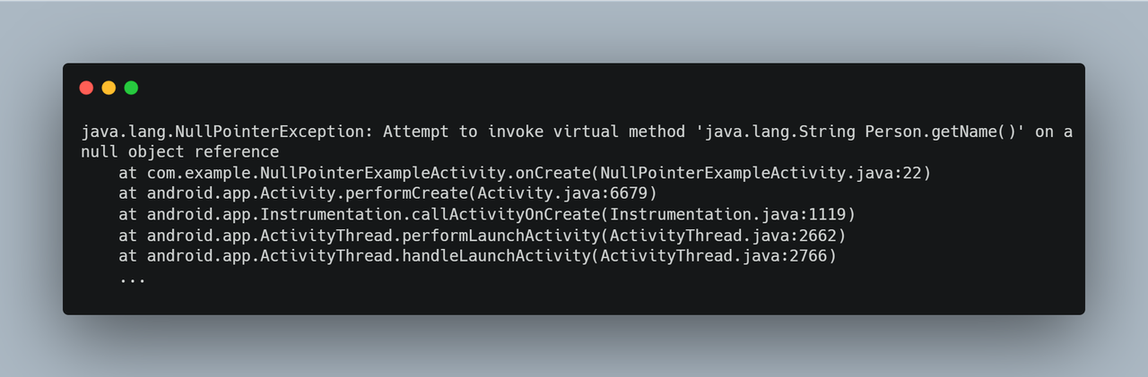 public class NullPointerExampleActivity extends AppCompatActivity {