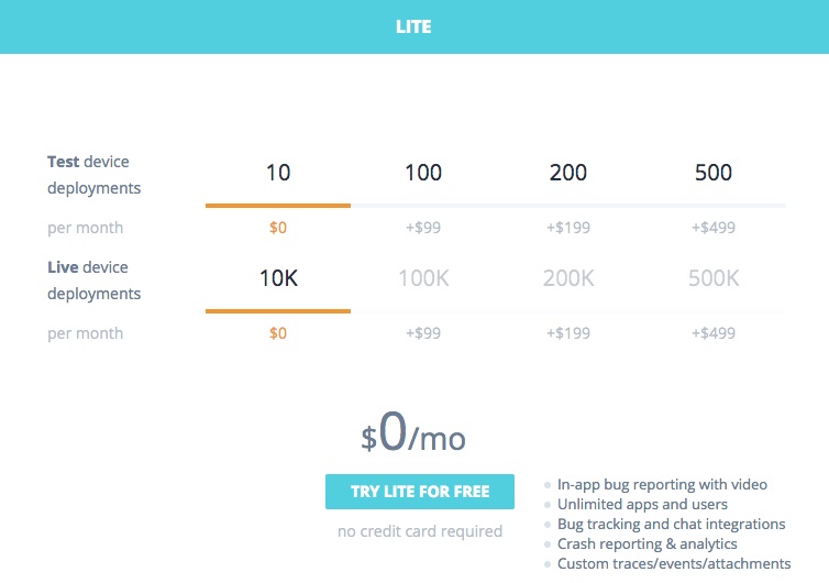 So the only factor that we were left with was charging per number of devices Bugsee is deployed on. The problem was that even in a moderately successful app, its number of users usually trumps the number of devices the app is being tested on in-house. So we had to introduce two different kinds of devices we are tying our pricing to: