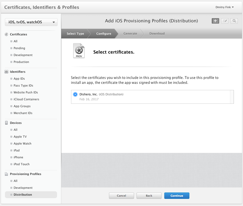 First of all you will need to create a distribution profiles in iTunes Connect.