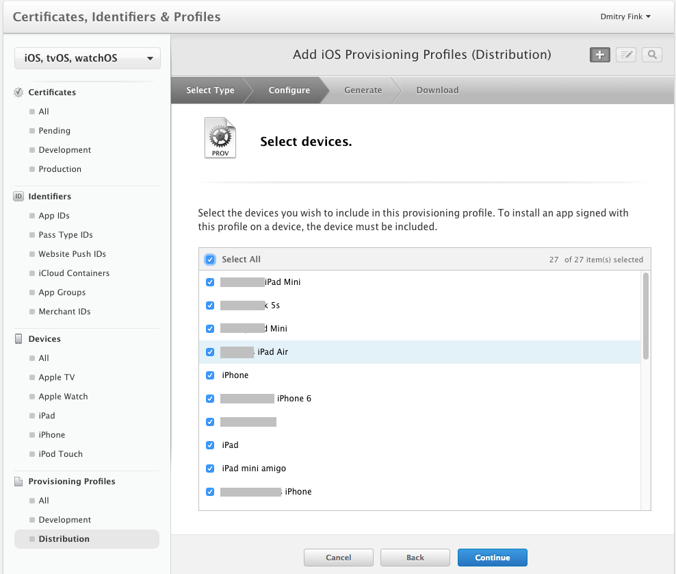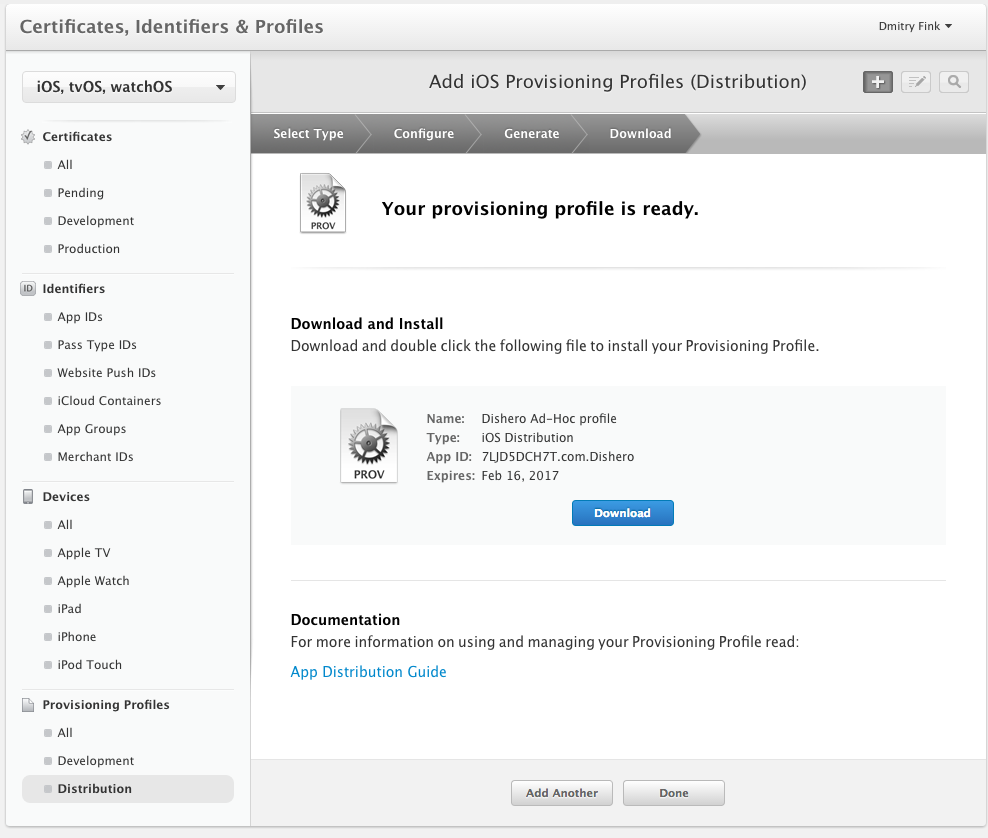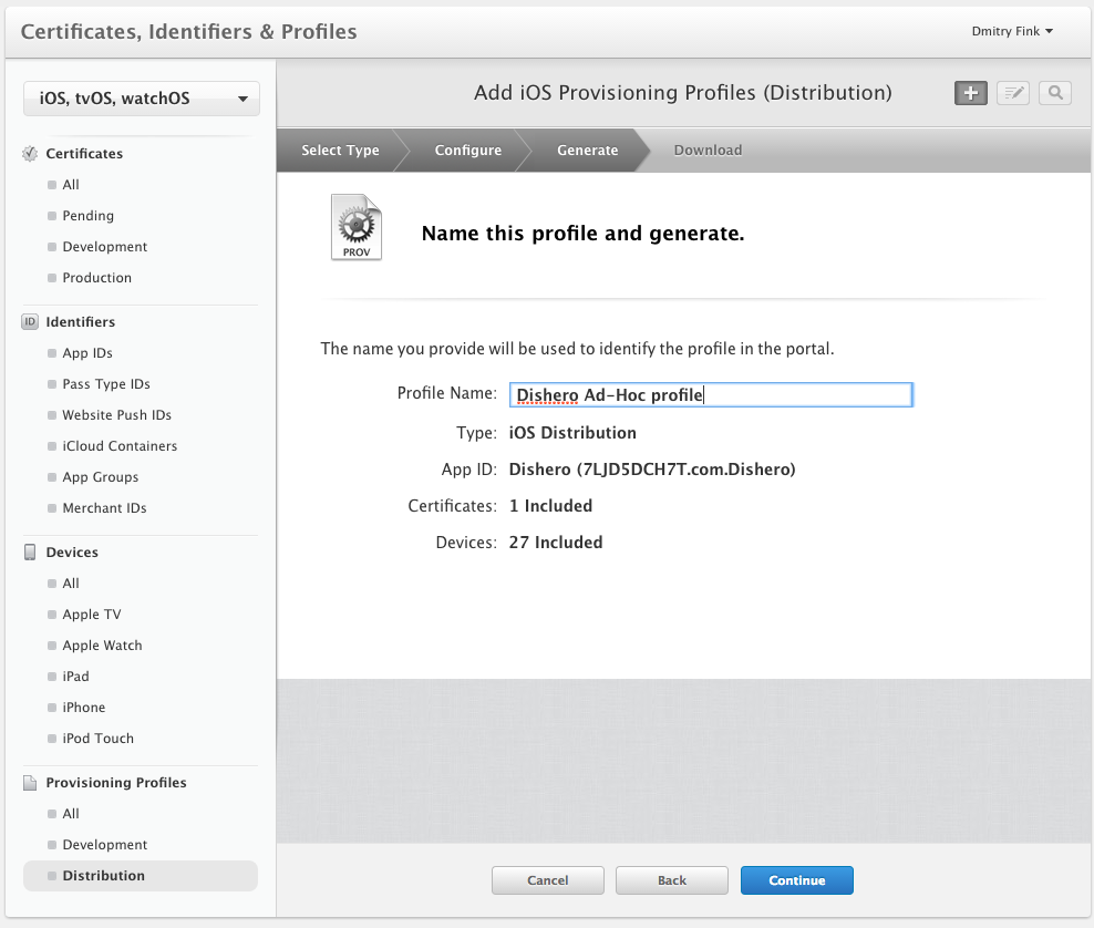 Create an Ad-hoc distribution profile